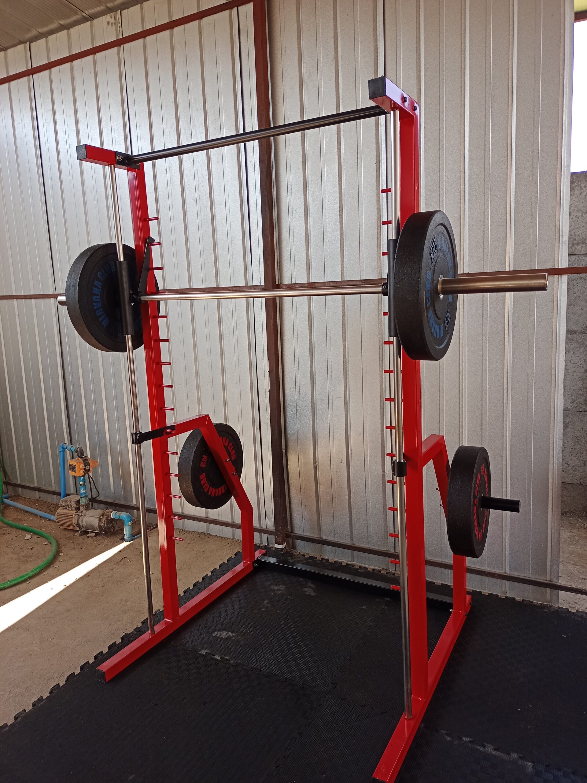 Jaula Smith, alto 2.10 mts ancho 1.20 mts fondo 1.20 mts. Ejes de acero masiso bañados en cromo, estructura con terminación en pintura electroestatica, rodamientos lineales para trabajo optimo, disponible 14 días después de tu compra, no incluye discos