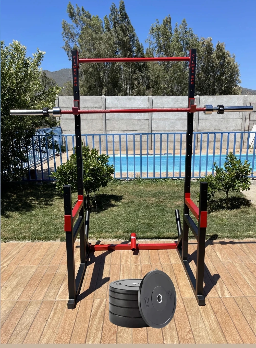 Media jaula fabricada en perfil de 50mm, incluye landmine con rodamiento lo que permite giro a 180 y 360 grados, j cup, soportes de seguridad, 12 niveles, soportes de discos olimpicos mas barra olimpica 15 o 20kg color a eleccion, collarines y 30kg en discos olimpicos bumpers par de 5kg y 10kg